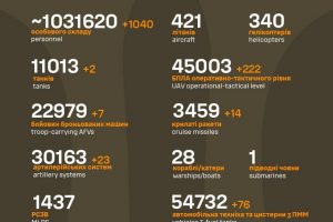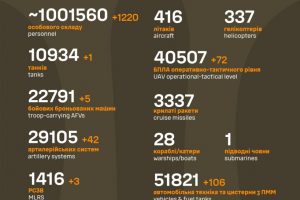 Загальні бойові втрати противника з 24.02.22 по 12.12.25 орієнтовно склали: особового складу ‒ близько 1 186 480 (+1 400) осіб;танків ‒ 11 406 (+2);бойових броньованих машин ‒ 23 705 (+6);артилерійських систем – 35 008 (+16);РСЗВ – 1 566...