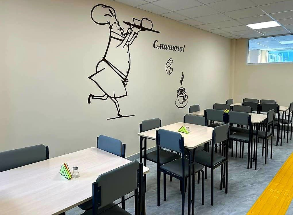 Оновлені їдальня та кухня. Відремонтовані та модернізовані як самі приміщення, так і системи вентиляції та комунікацій. Сучасне обладнання для приготування обідів. Якісні обіди – за здоровим меню.