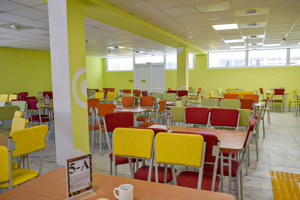 Тут проведено реконструкцію та капітальний ремонт харчоблоку. Оновлено обідню залу, тепер вона розрахована на 176 посадкових місць. Повністю замінено технологічне обладнання. Переплановано цехи, закуплено сучасний інвентар та посуд. Встановлені новенькі меблі. У їдальні функціонує буфет.