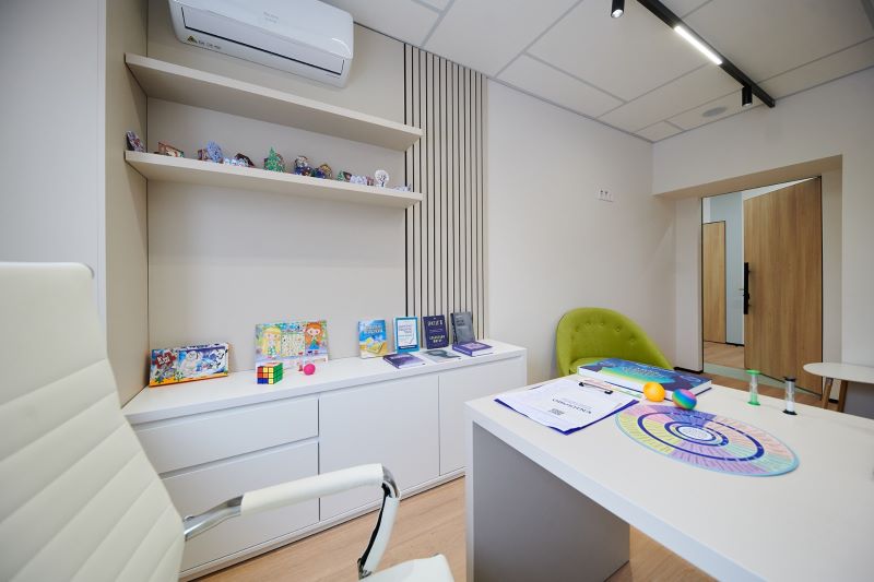У Центрі працюють кабінети психіатра та психолога/лікаря-психолога, кімнати для групової терапії, маніпуляційний кабінет, зона прийому й очікування. Також передбачено двомісну палату денного стаціонару з електричними багатофункціональними ліжками й інклюзивним санвузлом.